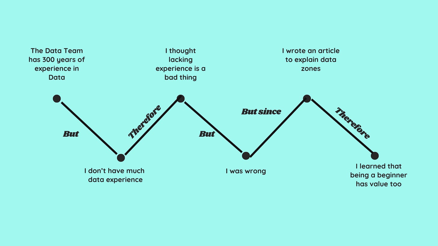 If I change to but & therefore, the story looks like this.